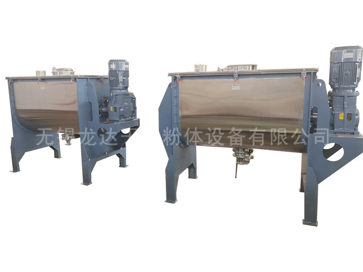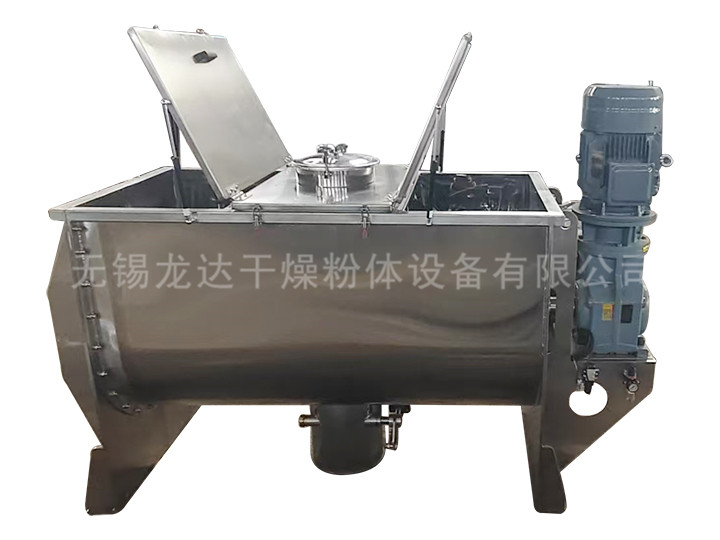 槳葉螺帶混合機由U或圓形容器、螺帶攪拌葉片和傳動部件組成;螺帶狀葉片一般做成雙層或三層,外層螺帶將物料從兩側向中央?yún)R集,內層螺帶將物料從中央向兩側輸送,形成對流混合。螺帶混合機對于粘性或有凝聚性的粉粒體的混合以及粉粒體中添加液體及糊狀物料的混合有良好的效果,筒蓋可做成全開式門,以便于對設備進行清洗更換產品。