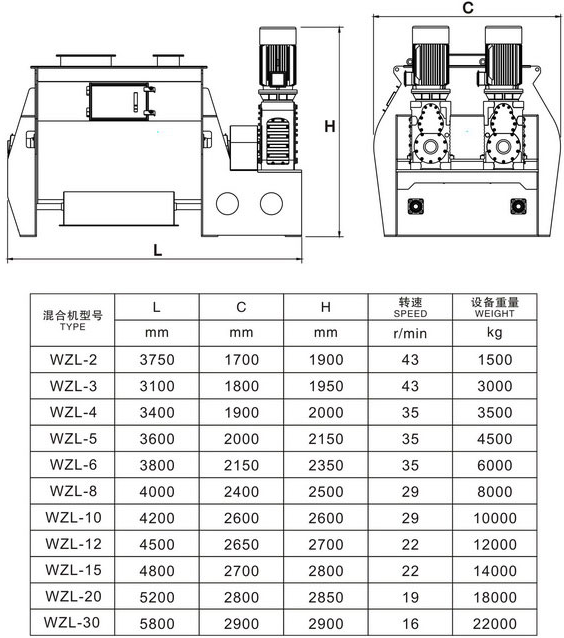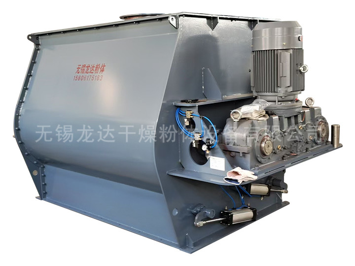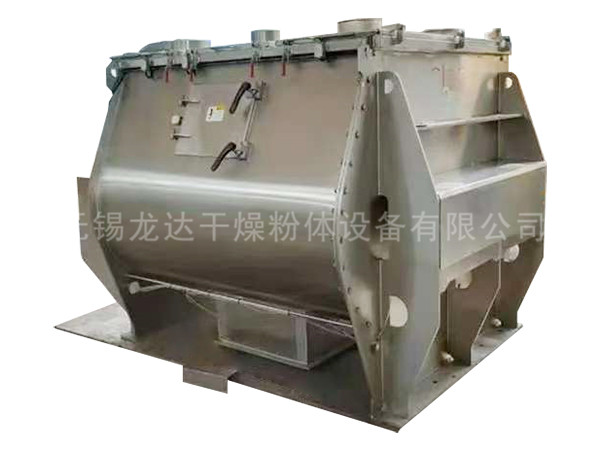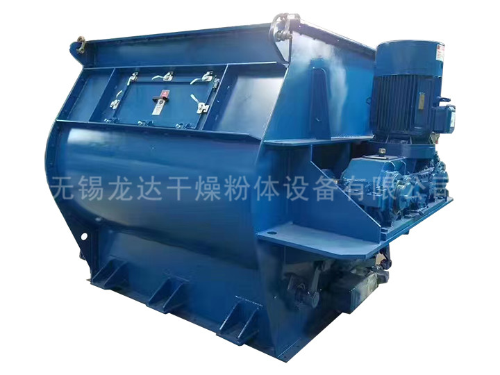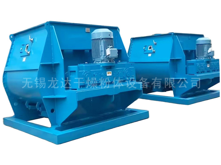 描述:雙軸槳葉混合機裝有兩根反向旋轉的平行軸裝有不同預設角度的槳葉。漿葉旋轉攪動物料的線速度超過零界轉速,致使物料能達到拋物線的最高點,我們稱之為無重力點,所以我們又稱雙軸漿葉混合機又為無重力混合機。